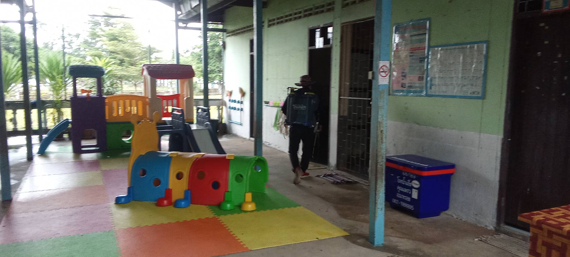 ฆ่าเชื้อป้องกันโรคปากเท้าเปื่อย ณ ศูนย์พัฒนาเด็กเล...